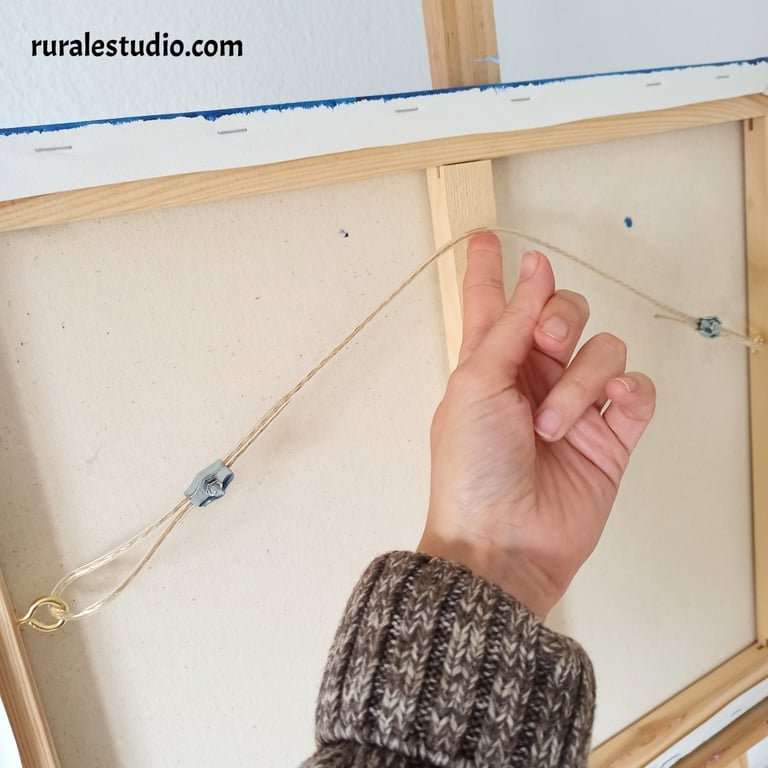 Nuestros lienzos se ofrecen sin marco, pero están diseñados con un sistema innovador en su reverso que facilita su colgado de manera sencilla. Este no es un simple enganche, sino un cordón especial que es adherente y extremadamente resistente. Gracias a esta técnica, se logra un equilibrio perfecto de la obra con un solo punto de apoyo, lo que garantiza que el lienzo se mantenga en su lugar y luzca espectacular en cualquier pared. Este detalle otorga no solo una instalación rápida y práctica, sino también la seguridad y estabilidad de su obra, permitiéndole disfrutarla sin preocupaciones.